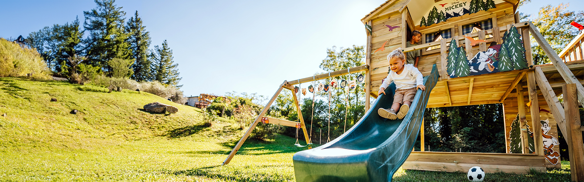 Wickey beschouwt zichzelf als pionier in de ontwikkeling van hoogwaardige speeltoestellen voor kinderen. Onze creatieve en met zorg ontworpen houten speeltoestellen toveren elke tuin of buitenruimte om tot een fantastisch avonturenparadijs voor kinderen! Of het nu gaat om een schommel, klimrek, zandbak, speeltoestel met glijbaan of een model uit ons Disney-assortiment – alle Wickey-speeltoestellen overtuigen door hun hoge kwaliteit en uniek design. Combineer een speeltoestel met een schommel of breid een speelhuisje uit met een zandbak – je creativiteit kent geen grenzen! Kleurrijke accessoires aan je klimrek of speelhuis op palen maken de speelervaring compleet. Als jullie als gezin op zoek zijn naar een sportieve uitdaging, kun je met onze FIT outdoor-fitnesstoestellen samen in de tuin actief worden. En zodat de avonturen ook in de dromen doorgaan, bieden we met liefde ontworpen kinderbedden aan; van eenpersoonsbed tot hoogslaper.