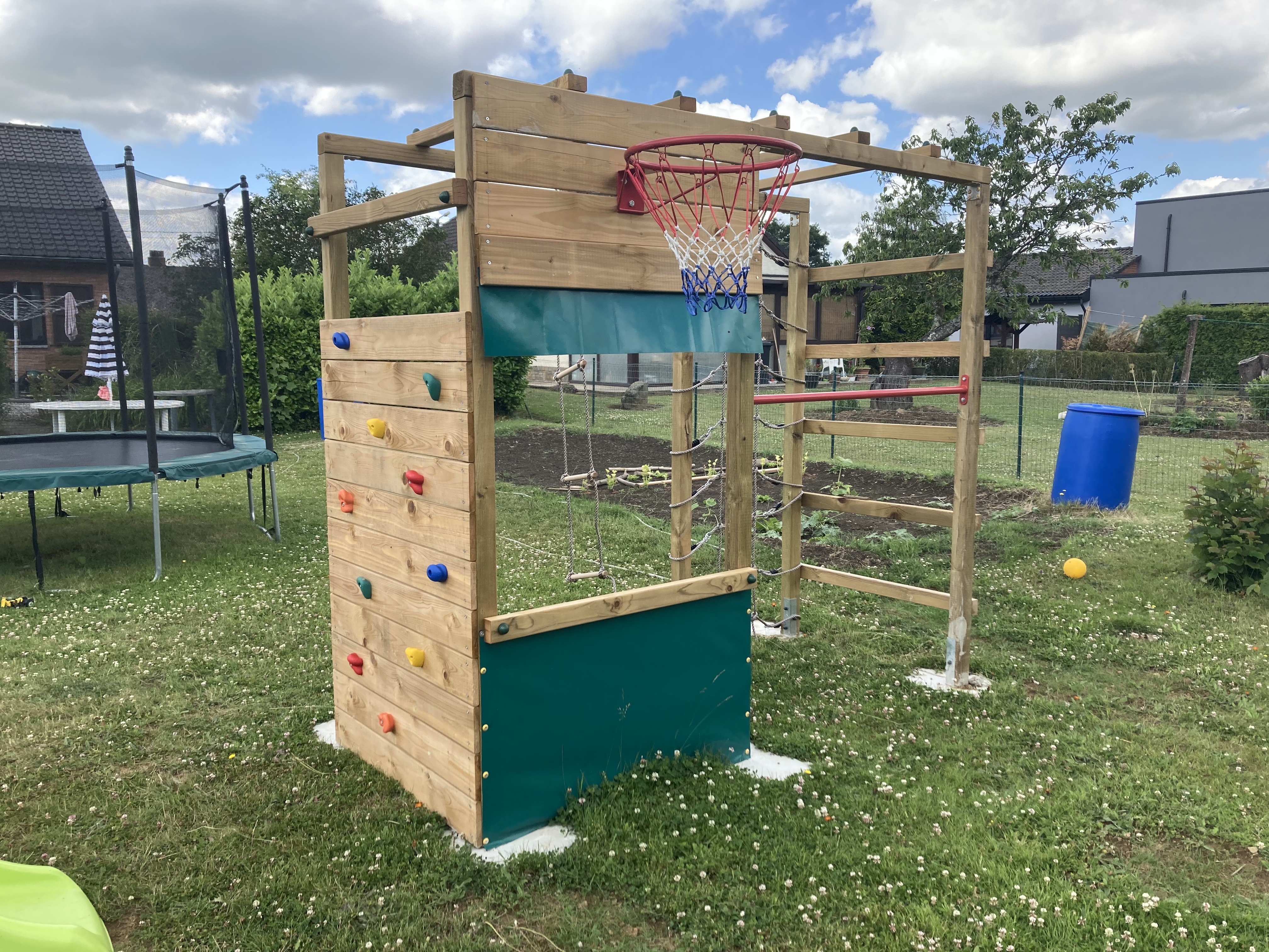 Het compacte Smart Action speeltoestel is juist populair bij gezinnen met een kleinere tuin en biedt je kids veelzijdige mogelijkheden om buiten te spelen. De basketbalring nodigt uit om met de bal te spelen. Aan het duikelrek kunnen je kinderen naar hartenlust turnen. Samen met hun vriendjes kunnen ze de grote klimwand en het klimnet op klimmen of hun behendigheid op de ladder met sporten of het klimtouw beproeven. De hangbrug stimuleert het coördinatievermogen van je kinderen en maakt van de Smart Action het perfecte totaalpakket voor eindeloos speelplezier.